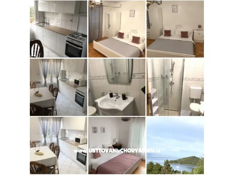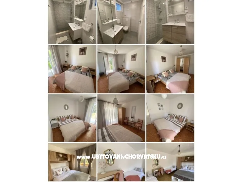 Hostům jsou k dispozici 3 prostranné apartmány a pokoje: 1 Apartmá – 50 m2 (3+2 postele) se skládá z třilůžkové ložnice a ze 1 dvojlůžkového pokoje, kuchyňského přístavku s plným vybavením, koupelny, balkónu s pohledem na moře, tv-sat, klimatizace, parkoviště. 2 Apartmá – 50 m2 (3+2 postele) se skládá z třilůžkové ložnice a z obývacího pokoje s možností 2 lůžek. Je zde...
