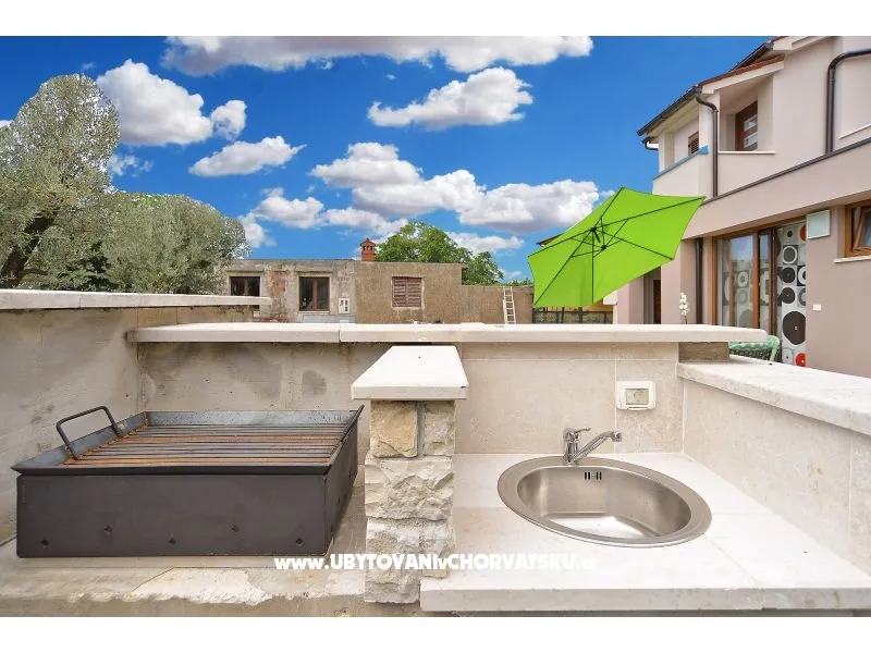 Dům se nachází ve Fažaně a má 3 apartmány: Apartmán pro 2 osoby s možností 2 přistýlek, apartmán pro 4 osoby s možností 2 přistýlek a 2 ložnicemi a Apartmán pro 4 osoby s možností 2 přistýlek a 2 ložnicemi. Dům se nachází 350m od centra a 350m od pláže.