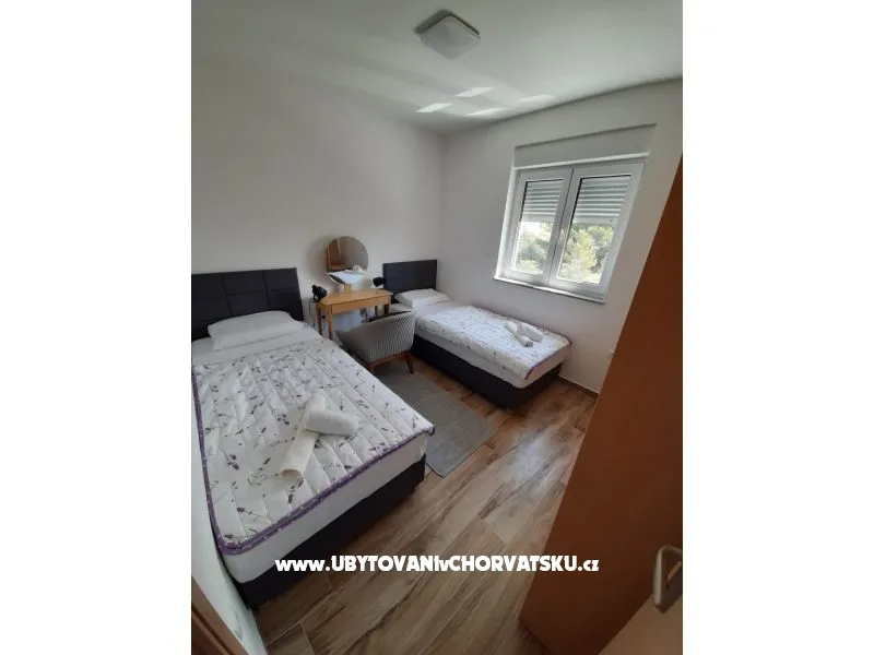 Apartmán "DAVID" je nově postavený a moderně vybavený prostor, který se nachází ve druhém patře malého bytového domu. Z balkonu apartmánu je krásný výhled na moře a staré město. Byt má kromě balkonu dvě ložnice, koupelnu, obývací pokoj s kuchyní.Vše je zcela nové a velmi dobře vybavené. Primošten je krásné středomořské místo, mimořádně příjemné pro dovolené a pobyty, známé svými čistými plážemi a restauracemi a přístavem Kremik. Nedaleko jsou další známá letoviska jako národní park Krka - 25 km, Trogir - 25 km, Šibenik - 35 km, Split - 50 km. Primošten je tou správnou volbou pro odpočinek a relaxaci. Vítejte v apartmánu DAVID.