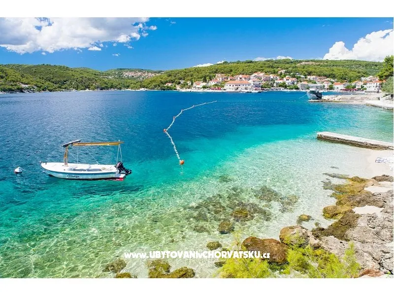 Dům se soukromým bazénem 75 m2, devíti klimatizovanými apartmány a soukromým bezplatným parkováním ve stínu borového lesa se nachází v klidné části Sumartinu s krásným výhledem na moře, ostrovy, Biokovo, Hvar a Pelješac . Objekt se nachází přímo u pláže, dvacet metrů od moře a je orientován na jih. Celkem devět klimatizovaných apartmánů pojme až 34 osob. Apartmány jsou rozděleny do pater: čtyři v prvním patře a čtyři ve druhém, přičemž jedno se nachází v přízemí. V závislosti na dostupnosti vám nabídneme byty, které jsou v danou chvíli volné. Ceny jsou v červnu a září nižší, proto nás neváhejte kontaktovat pro nabídky na tato období. Na vyžádání k dispozici pračka. Restaurace, kavárny, supermarkety, pošta a centrum města jsou asi 500 metrů daleko. Ubytování v 1 patře: 1. Apartmán 2+2: 50 m2, 1x ložnice s manželskou postelí, dvě lůžka/křeslo v obývacím pokoji, kuchyň, koupelna, soukromá terasa orientovaná na jih; 2. Apartmán 2+2: 50 m2, 1x ložnice s manželskou postelí, dvě lůžka/křesla v obývacím pokoji, kuchyně, modernizovaná koupelna, soukromá terasa orientovaná na jih; 3. Apartmán 2+0: 30 m2, 1x ložnice s manželskou postelí, obývací pokoj, kuchyně, modernizovaná koupelna, soukromý malý balkon orientovaný na sever; 4. Apartmán 5+0: 70 m2, 2x ložnice (a: manželská postel + postel pro jednu osobu; b: manželská postel), obývací pokoj, kuchyň, koupelna, soukromá terasa orientovaná na západ. Ubytování ve 2. patře: 5. Apartmán 2+2: 50 m2, 1x ložnice s manželskou postelí, dvě lůžka/křeslo v obývacím pokoji, kuchyň, koupelna, soukromá terasa orientovaná na jih; 6. Apartmán 2+2: 50 m2, 1x ložnice s manželskou postelí, dvě lůžka/křeslo v obývacím pokoji, kuchyně, modernizovaná koupelna, soukromá terasa orientovaná na jih; 7. Apartmán 2+0: 30 m2, 1x ložnice s manželskou postelí, obývací pokoj, kuchyně, modernizovaná koupelna, soukromý malý balkon orientovaný na sever; 8. Apartmán 5+0: 70 m2, 2x ložnice (a: manželská postel + postel pro jednu osobu; b: manželská postel), obývací pokoj, kuchyň, koupelna, soukromá terasa orientovaná na západ. Ubytování v přízemí: 9. Apartmán 4+0: cca 45 m2, 2x ložnice (a: manželská postel; b: 2x samostatné lůžko), moderní kuchyně, obývací pokoj, koupelna s hydromasáží, soukromá terasa orientovaná na jih. V devíti klimatizovaných apartmánech je možné ubytovat až 34 osob. Apartmány jsou rozděleny na podlaží: čtyři v prvním patře a čtyři na druhém, zatímco jeden je v přízemí. V závislosti na dostupnosti vám nabídneme apartmány, které jsou v daném okamžiku k dispozici. Ceny jsou v červnu a září nižší, proto nás můžete kontaktovat v případě nabídek pro tato období. Ve všech apartmánech je nová kuchyňská linka, nový obrobek a nová umyvadlová mísa, zatímco pět apartmánů je zcela přepracováno; takže byty byly modernizovány. Koupelny v dalších čtyřech bytech budou přepracovány na další (2020) období. K dispozici je velká společná terasa před bazénem s lehátky, stoly a židlemi, které si můžete vychutnat v očích a před bazénem. Pračka je k dispozici na vyžádání. Restaurace, kavárny, supermarkety, pošta a centrum jsou vzdálené asi 500 metrů. Ubytování v prvním patře: 1. Byt 2+2: 50 m2, 1x ložnice s manželskou postelí, dvě lůžka / křesla v obývacím pokoji, kuchyň, koupelna, terasa směřující na jih; 2. Byt 2+2: 50 m2, 1x ložnice s manželskou postelí, dvě lůžka / křesla v obývacím pokoji, kuchyň, moderní koupelna, terasa orientovaná na jih; 3. Apartmán 2+0: 30 m2, 1x ložnice s manželskou postelí, obývací pokoj, kuchyň, moderní koupelna, malý soukromý malý balkon orientovaný na sever; 4. Apartmán 5+0: 70 m2, 2x ložnice (a: dvoulůžko + jednolůžko, b: dvoulůžko), obývací pokoj, kuchyň, koupelna, terasa orientovaná na západ. Ubytování ve 2. patře: 5. Byt 2+2: 50 m2, 1x ložnice s manželskou postelí, dvě lůžka / křesla v obývacím pokoji, kuchyň, koupelna, terasa orientovaná na jih; 6. Byt 2+2: 50 m2, 1x ložnice s manželskou postelí, dvě lůžka / křesla v obývacím pokoji, kuchyň, moderní koupelna, terasa orientovaná na jih; 7. Apartmán 2+0: 30 m2, 1x ložnice s manželskou postelí, obývací pokoj, kuchyň, moderní koupelna, malý soukromý malý balkon orientovaný na sever; 8. Byt 5+0: 70 m2, 2x ložnice (a: dvoulůžko + jednolůžko, b: dvoulůžko), obývací pokoj, kuchyň, koupelna, terasa orientovaná na západ. Přízemní ubytování: 9. Apartmán 4+0: cca 45 m2, 2x ložnice (a: dvoulůžko, b: 2x samostatné lůžko), moderní kuchyň, obývací pokoj, koupelna s hydromasážou, terasa orientovaná na jih.