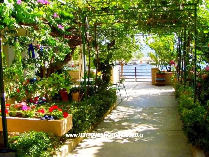 Apartmány v první řadě u moře a pláže. Dům je obklopen středomořskou florou. Některé apartmány mají klimatizaci a některé ne. V těsné blízkosti je betonová pláž (0m), písečná pláž (20m) a oblázková pláž (200m). V okruhu 2 km jsou k dispozici různé aktivity: - voleyball - běh po písečné pláži 4km dlouhé - surfing - škola potápění - rafting na řece Cetina - vodní lyžování - vodní polo - další vodní sporty - turistika - horolezectví - tenis - basketbal - malá kopaná - kola