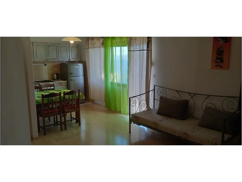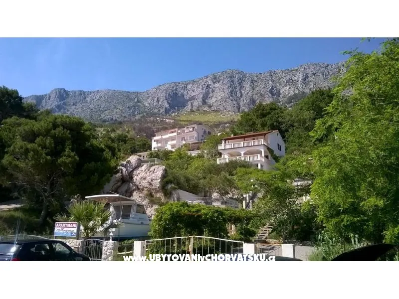 Garsonka - Studio apartmán na půli cesty mezi Splitem a Makarskou (Split 35 km; Makarská 25 km), od městečka Omiš 8 km. Apartmán se nachází v klidné a tiché lokalitě 250m od pláže s krásným výhledem na moře a ostrov Brač.