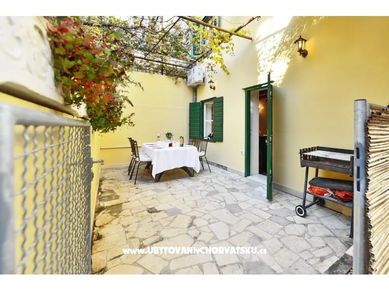 Rodinný dům v centu Omiše, pouhých třicet metrů od hlavní pláže s modrou vlajkou v klidné oblasti, daleko od hluku a silnic. Apartmán je zařízen v moderním - rustikálním stylu a plně vybavené. Skládá se z přízemí s kuchyní, jídelnou a obývacím pokojem a větší koupelny s pračkou, a na prvním patře jsou tři dvoulůžkové ložnice a druhá koupelna. Dům má zahradu s grilem a stůl pro deset lidí. Kapacita je 6 +3 osoby, protože se pohovka s matrací v přízemí rozkládá pro 2 +1 osoby. Kuchyňská linka je vybavena spotřebiči a nádobím, včetně myčky nádobí, přízemí a první patro jsou klimatizované a mají trezor, internet, SAT TV. Matrace jsou nejlepší - ortopedické a ložní prádlo je jedinečná, ručně vázaná. Parking zajištěn dvacet metrů od objektu. Vše (pobytová taxa, klimatizace, parkování ..) je zahrnuto v ceně.