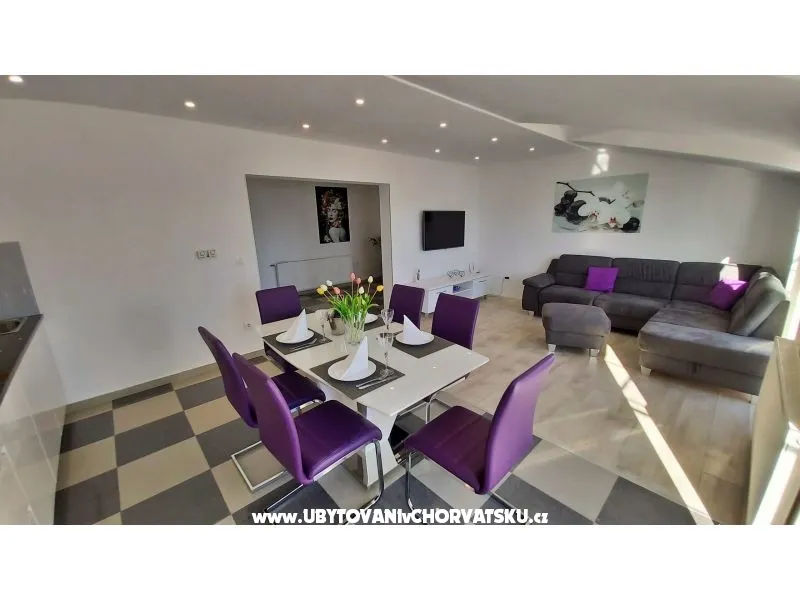 Naše apartmány se nachází v Duće, jen 20 km od Splitu, který je centrem Dalmácie. Jen 1km od nás je město Omiš - krásné malé město spojující moře, řeku Cetinu a strmé hory. Proto jsou Duće ideálním místem pro dovolenou. Povlečení a ručníci se mění 1x týdně.