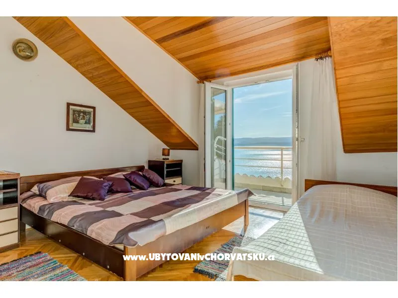 3 oddělené ložnice pro 2, 3 a 3 osoby, vlastní vchod, každá ložnice má svůj balkón, velký obývací pokoj s jídelním stolem a velkou terasou s výhledem na moře, 2x koupelna se sprchou a WC, kuchyň, smart TV, klima. Nádherný výhled na moře.
