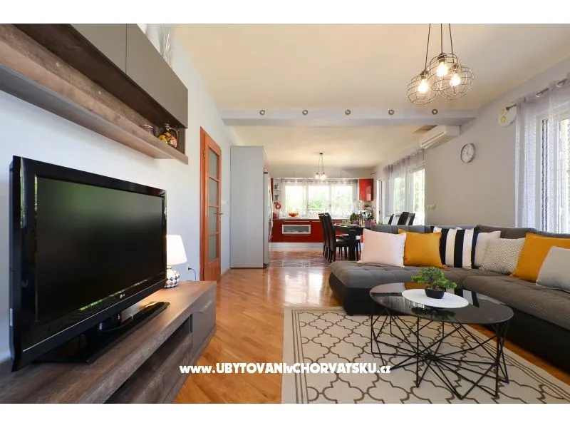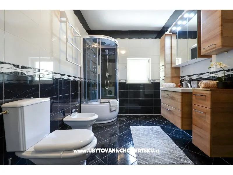 100 m2 + 60 m2 balkon / terasa; 3 ložnice, 6 pánských + 1 přistýlka; 1 koupelna, 1 kuchyň; výhled na moře, soukromá terasa; jídelna, obývací pokoj, grilování; soukromé parkoviště, venkovní sprcha