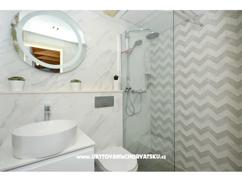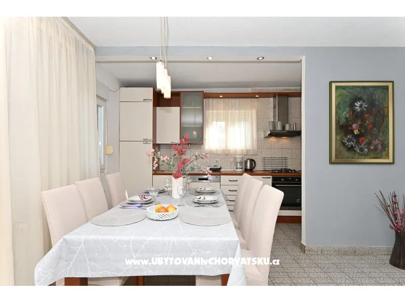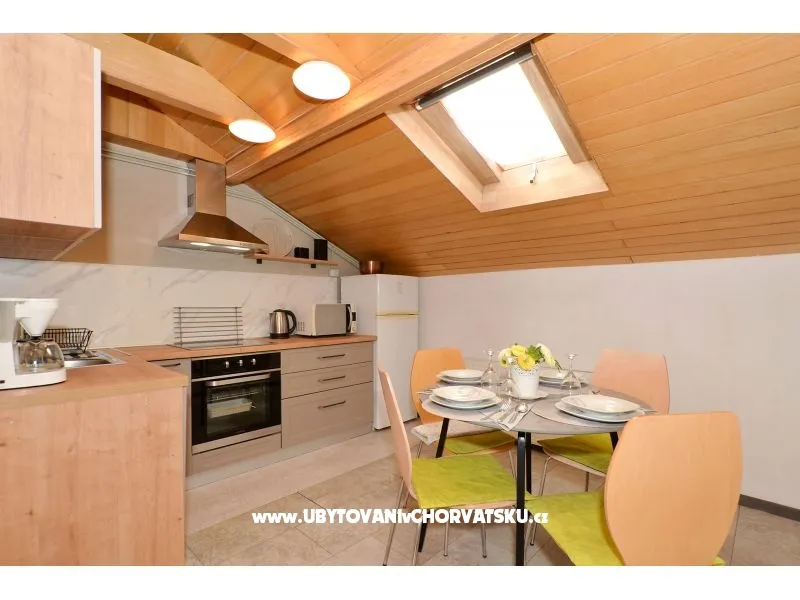 Za rezervaci platíte 35% zálohu + rezervační poplatek. Zbytek se platí při příjezdu do zařízení. Minimální délka pobytu je 3 noci. V hlavní sezóně je minimální délka pobytu 5 noci. Apartmány Ria se nachází 70 m od pláže (druh pláže: betonová, štěrková). Oba apartmány mají vlastní terasu s výhledem na moře. Dětská postýlka na vyžádání. Venkovní vybavení: venkovní gril, příjezd k objektu autem, soukromé parkoviště, garáž, zahrada Upozornění: Jedno parkovací místo na apartmán