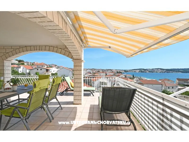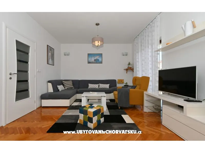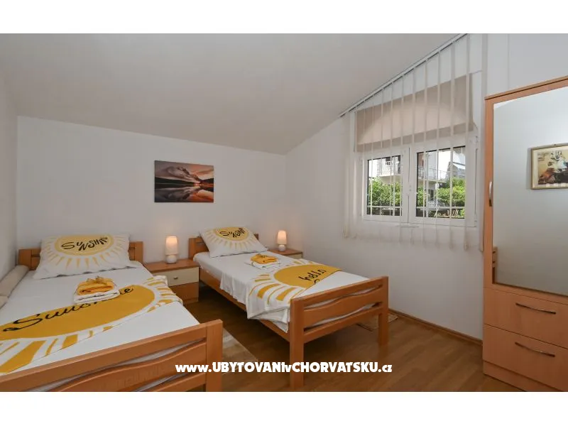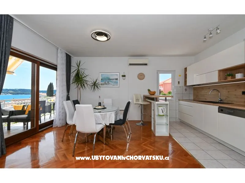 Lucija, 130m2, v prvním patře domu, pro 8 osob. Apartmán má 3ložnice, kuchyni, obývací pokoj, 2 wc a koupelnu. Jedna ložnice s manželksými lůžky.