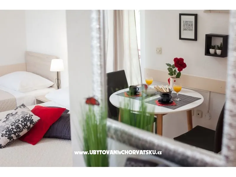 Super pensjonat z apartamentami z widokiem na morze. Ładnie i gustownie urządzone pokoje, dobrze wyposażone i przede wszystkim nowe. apartamenty są stosunkowo duże. W stosunku jakość/cena zdecydowanie jedna z najlepszych opcji w Tucepi. Warto dopłacić za apartamenty 4/5os na ostatnim piętrze z dużymi tarasami i zniewalającym widokiem na Adriatyk. Dojście na plażę zajmuje 5 minut spokojnym spacerem, a po drodze mija się sklepy i restauracje.