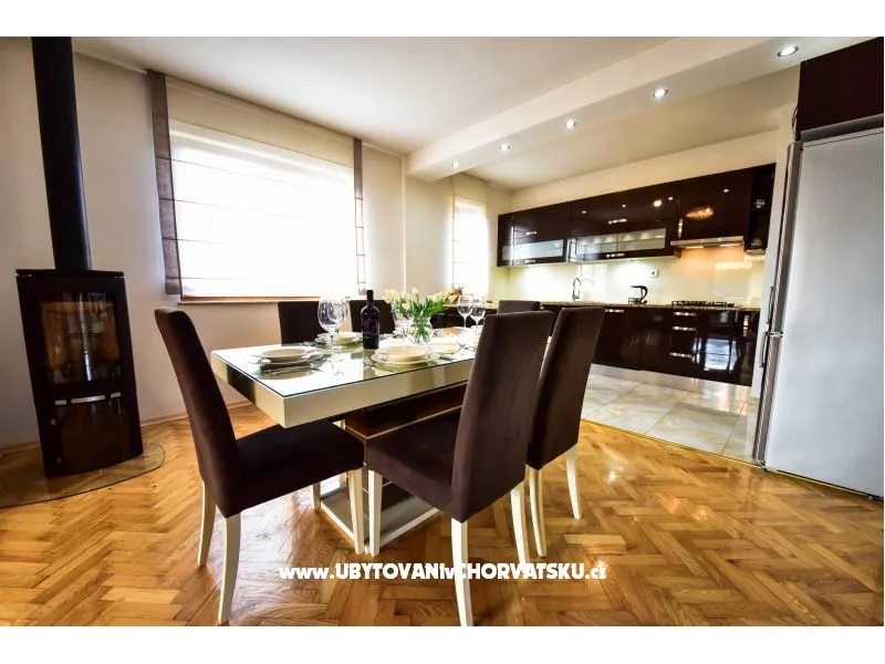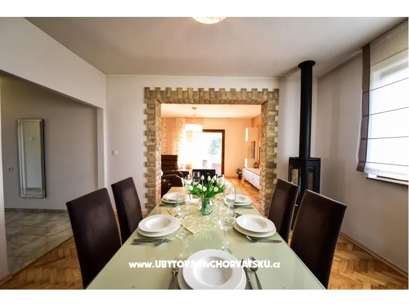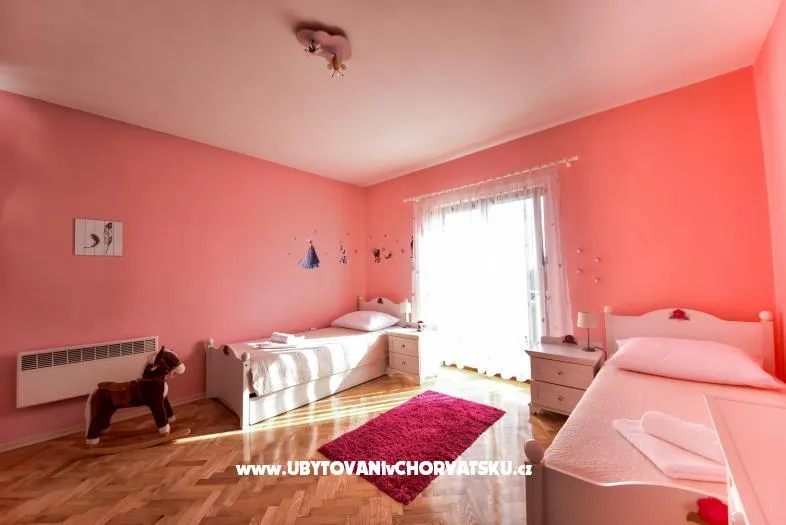 Apartmán v prvním patře rodinného domu, 20 m od pláže, klimatizovaný. Moderně zařízený, s plně vybavenou kuchyní s myčkou a troubou, obývací pokoj, terasa s výhledem na moře. Wifi zdarma. 2 ložnice, koupelna s pračkou, samostatné WC. Velký dvůr s parkováním, gril.