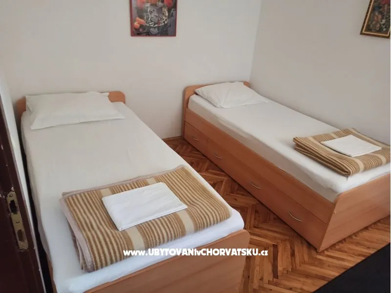 MM Apartmány se nachází v rodinném domě v klidné části obce, v blízkosti moře a pláže. MM Apartmány nabízí ubytování ve dvou apartmánech, které jsou umístěny v prvním a druhém patře. V prvním patře je apartmán pro 4 nebo 5 osob, skládající se ze dvou ložnic, kuchyně, koupelny, terasy. Ve druhém patře je apartmán pro 5 nebo 6 osob, skládající se ze tří ložnic, kuchyně, koupelny a velké terasy s výhledem na moře. Apartmány mají klimatizaci, TV, gril a parkoviště. Pohled je směrem k moři a do města Pag. Nedaleko (200 m - 350 m) je obchod a restaurace, centrum města Pag se nachází 1500 m Rodina Mudrovčić Vám přeje vřelé přivítání a příjemný pobyt!