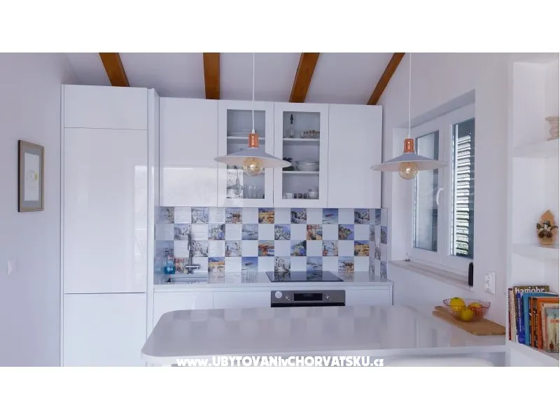 Krásný nově zrekonstruovaný byt, plně zařízený, s terasou s výhledem na celý záliv. Zahrada a pláž před domem.