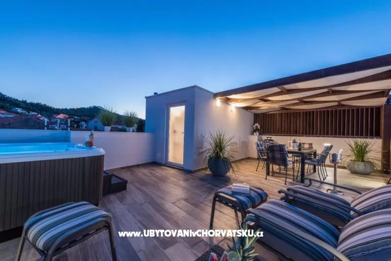 2 luxusní apartmány se střešní terasou a vířivkou. Nejlepší výhled na moře a město Zadar. Apartmány jsou nové a moderně zařízené, v centru města a 5 m od moře.