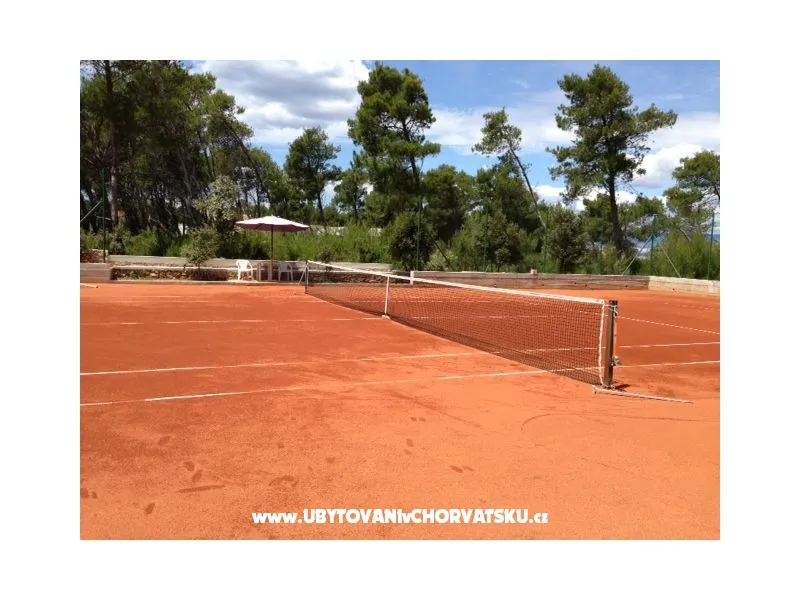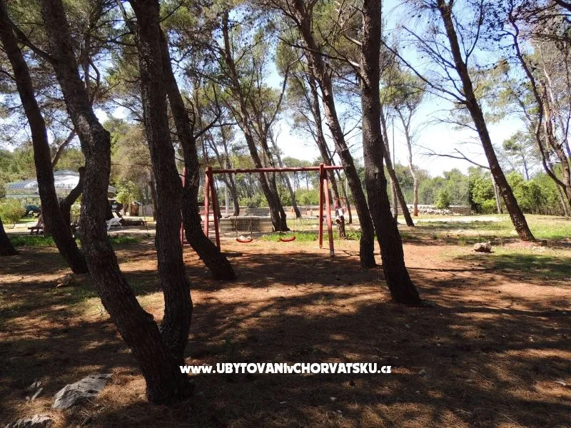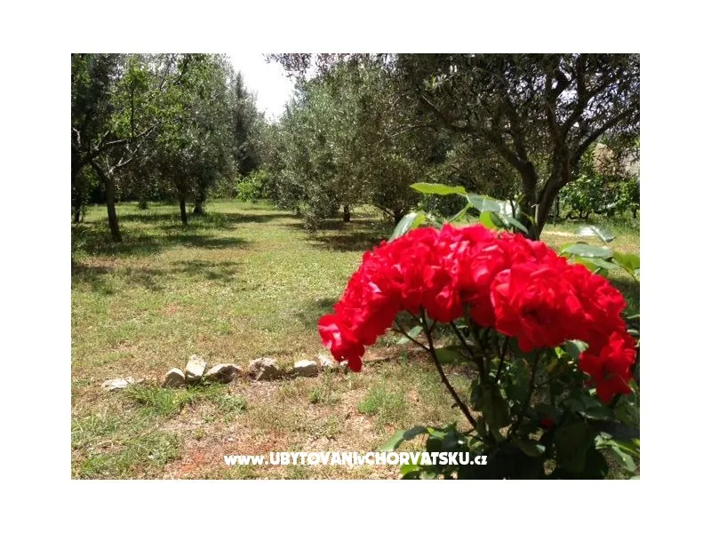 Apartmány jsou situovány v třípodlažním domě středomořském stylu uprostřed borového lesa, pouhých 150 metrů od pláže. Každý ze čtyř apartmánů je nově zrekonstruován a vybaven vším potřebným, aby se host cítil jako doma. Kuchyňské spotřebiče, klimatizace, televize se satelitem, komfortní koupelna a balkony jsou nedílnou součástí každého z nich. Dům je jen 1000 m od centra, 50 m od pekárny, 400m od obchodů, 300 m od restaurace. Zahrada s 30 000 m2 plochy je nedílnou součástí všech apartmánů a je k dispozici pro své návštěvníky, nabízí jim zábavu a odpočinek během dne a večera. Všichni hosté mají k dispozici gril, stůl ve stínu borovic a lehátka pro relaxaci. Fíky, hrušky, švestky, hrozny a různé byliny, které jsou v zahradě si hosté mohou za doprovododu domácích utrhnout a ochutnat kouzlo středomořské stravy. Ti, kteří si neumí představit dovolenou bez sportu se nabízí antukový tenisový kurt, petangue, volejbalové hřiště a jogging stezka ve stínu borovic. Pro děti je k dispozici koutek s houpačkami a pískoviště jakož i les obehnaný kamennou zdí.