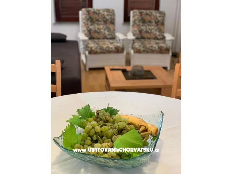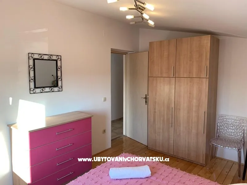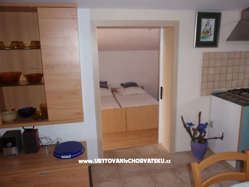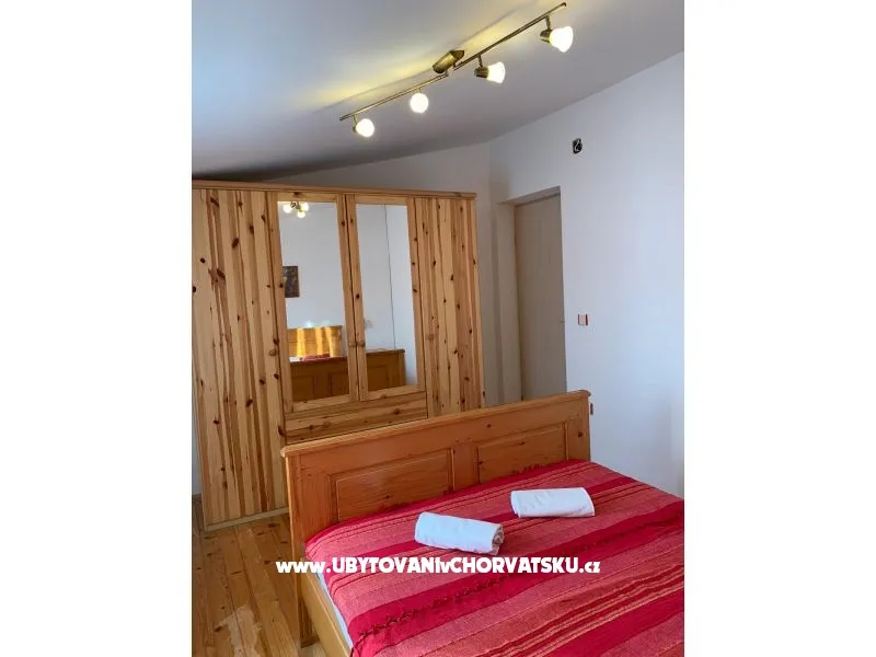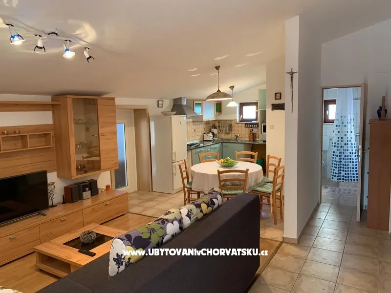Pronájem apartmánu na ostrově Vir. Apartmán má 3 ložnice, koupelnu, kuchyni s jídelnou a obývacím pokojem a terasu s výhledem na moře. Apartmán je klimatizovaný, s TV a satelitem a dalším vybavením. Apartmán se pronajímá od 1.5. do 1.11.