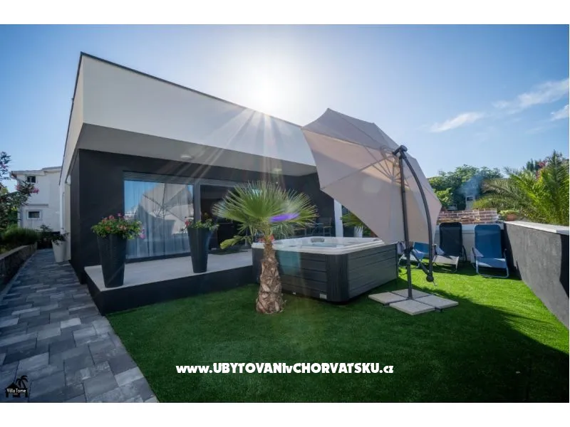 Dům je jednopodlažní, nově zařízený, tři pokoje, kuchyň a obývací pokoj, koupelna s pračkou. Na terase je jacuzzi. Dům pojme max. 6 lidí. Parkování zajištěno. Vše je v blízkosti - restaurace, obchody, promenáda. Pláž 350m.