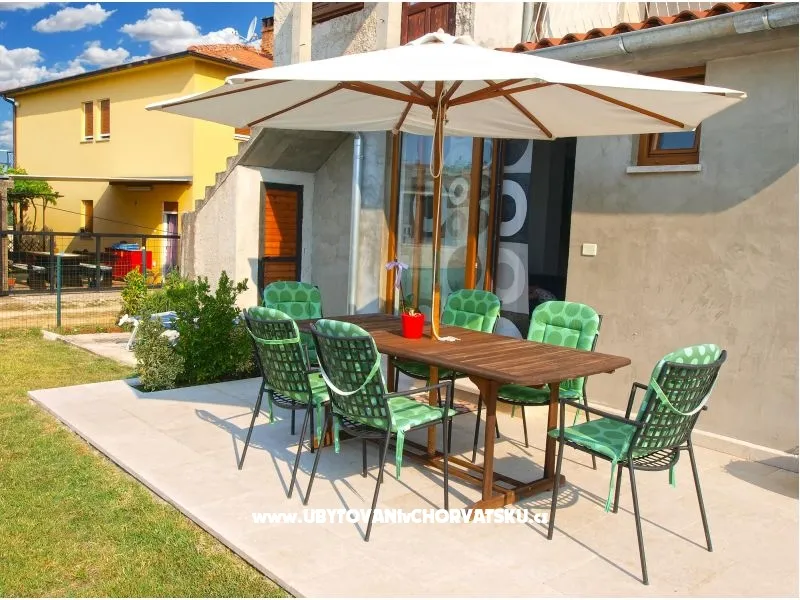 Dům se nachází ve Fažaně a má 3 apartmány: Apartmán pro 2 osoby s možností 2 přistýlek, apartmán pro 4 osoby s možností 2 přistýlek a 2 ložnicemi a Apartmán pro 4 osoby s možností 2 přistýlek a 2 ložnicemi. Dům se nachází 350m od centra a 350m od pláže.