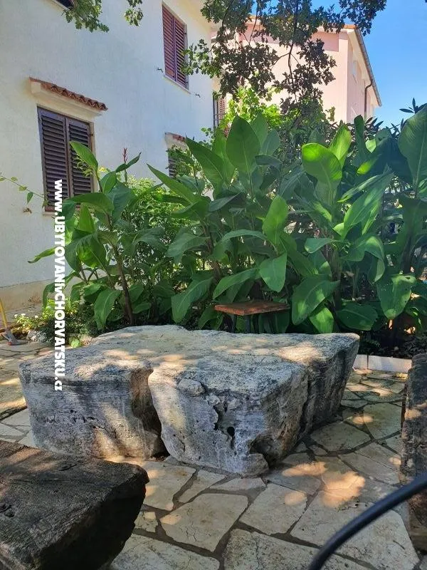 Prostorný byt se nachází v přízemí. Koupelna s WC + samostatné WC, pračka, velký krytý balkon s velkým stolem a židlemi pro 6 a více osob + terasa se stolem a židlemi.