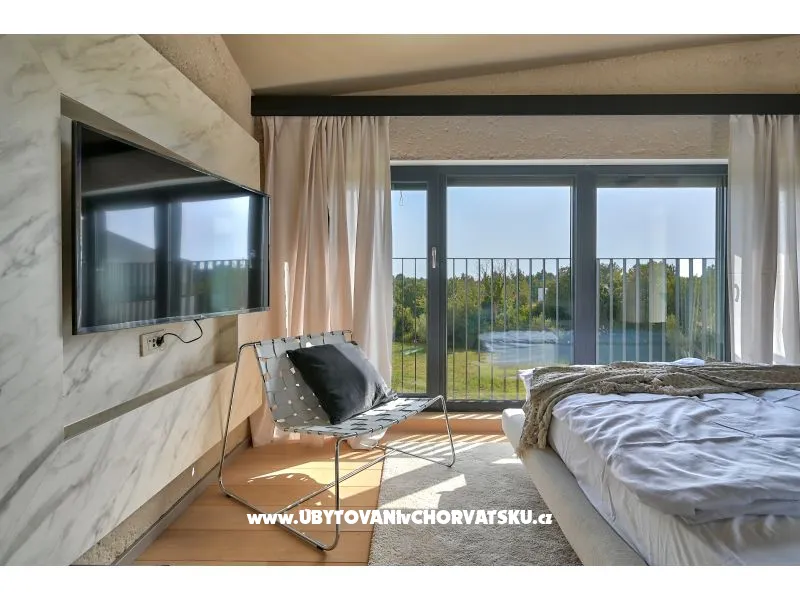 Luxusní vila Itea vás zve na vysněnou dovolenou do pohádkového městečka Vabriga na severozápadním pobřeží Istrie. Kromě bohaté gastronomické nabídky a krásných pláží v dosahu vám Istrie nabízí možnost prozkoumat četné vinné stezky, kterými je tento chorvatský region proslulý. Vila Itea zaujímá plochu 180 m2 a je postavena v moderním stylu s kontrastními povrchy minimalistického designu a má ubytovací kapacitu pro maximálně 8 osob. Ze 4 ložnic s plně vybavenými koupelnami se jedna nachází v přízemí a další 3 v horním patře vily. K dispozici je pračka a žehlička. Každý pokoj má vlastní terasu s výhledem na zeleň a nedotčenou přírodu. V přízemí vily se nachází prostorná jídelna s kuchyní a obývací pokoj vybavený rohovou pohovkou, konferenčním stolkem, krbem, herní konzolí a deskovými hrami. Na terase vily se nachází krásný bazén o rozloze 26 m2 a hloubce 1,5 m s možností hydromasáže na jedné straně bazénu. Kolem bazénu je 8 lehátek, k dispozici je také venkovní jídelní stůl a venkovní gril. Villa Itea nabízí mnoho dalších zábavních zařízení, jako jsou kola nebo elektrické koloběžky. V plně oploceném dvoře vily jsou k dispozici 3 parkovací místa. Okolí vily nabízí potěšení z romantických procházek v nedotčené přírodě a na nejbližší pláži, necelé 2 km od vily, si můžete užít vodní sporty a krásné Jaderské moře. Nedaleko se nachází tajemná jeskyně Baredine, kde objevíte skutečnou pokladnici podzemních soch uspořádaných v pěti sálech. Jeskyně Baredine také skrývá legendu ze 13. století, milostný příběh o šlechtici Gabrielovi, který se zamiluje do pastýřky Milky. Gabrielova matka se jejich lásce bránila, a tak najatí lupiči dívku hodili do jámy. Gabriel pak zmizel i se svým koněm a krátce nato našli pouze koně poblíž východu z jiné nedaleké jámy. Podle legendy zkamenělé tělo pastýřky každý den klouže hlouběji a hlouběji do jámy, aby se na druhé straně setkalo se svým milovaným. Istrie je pohádkou nejen díky svým rozmanitým a zajímavým místům, ale také kvůli četným středověkým pevnostem a městům, které svědčí o bohaté historii tohoto regionu. Například město Motovun v centru Istrie je skutečným centrem středověkých pevností a v letních měsících se zde koná filmový festival. Na istrijském pobřeží najdete městská centra jako Umag, Poreč, Rovinj nebo Pula, která sahají až do předantické doby. Například v Pule na jihu Istrijského poloostrova budete moci vidět římský amfiteátr, který je také známý jako největší dochovaná památka starověku. O něco severněji, ve městě Poreč, si můžete prohlédnout unikátní komplex raně křesťanské sakrální architektury ze 6. století, který je jednou z nejkrásnějších dochovaných památek byzantského umění. Istrie má také bohatou nabídku jídla a vína, vzhledem k tomu, že se jedná o region s mimořádně příznivou geografickou polohou, dnes z Istrie pocházejí nejlepší vína a olivový olej. Nenechte si ujít další zajímavé recepty, jako je istrijské maso boškarina, intenzivní lanýže nebo tradičně připravované těstoviny. Pokud chcete, aby se vaše dovolená proměnila ve skutečnou oázu klidu a soukromí, vyberte si vilu Itea, která vám poskytne luxus, který si zasloužíte, a bohatá gastronomická, kulturní a sportovní nabídka Istrie vaši dovolenou doplní a učiní ji dokonalou. Upozorňujeme, že toto zařízení nepřijímá mládežnické skupiny ani rozlučky se svobodou. Mládežnická skupina v tomto zařízení se skládá z osob v dhobi do 30 osob. Nerezervujte si toto ubytování, pokud jste skupina mladých lidí nebo plánujete rozlučku se svobodou, protože vaše rezervace bude po provedení rezervace zamítnuta, což se může stát při příjezdu do zařízení nebo během vašeho pobytu, a peníze vám nebudou vráceny.