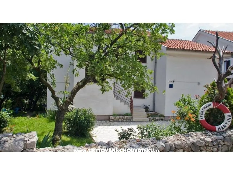 Pro dovolenou daleko od hluku a shonu nabízíme ubytování s velkou terasou s výhledem na moře v pěkném, útulném, vícegeneračním domě "Martina". Naše vesnička Jadranovo-Perhati se nachází 10 km od Crikvenice. Slunná poloha ve svahu, 300 m od moře, v zeleni. Zahrada s rostlinami a květinami. Zahradní nábytek, gril, dětské hřiště (houpačka, pískoviště). Parkovací místo u domu. Obchod 700 m, restaurace 450 m, oblázková pláž, skalnatá pláž, zátoka ke koupání 300 m. Tenis 20 m. V domě se pronajímá několik apartmánů.