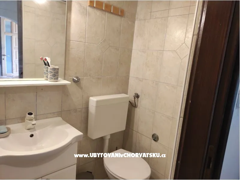 Dům se zahradou a krytým parkováním v klidné staré části města, 25 minut chůze od pláže a 5 minut autem, v přízemí se nachází terasa s přístřeškem, zahrada, venkovní sprcha, gril, otevřený prostor jídelny, obývacího pokoje a kuchyně (trouba, myčka nádobí, mikrovlnná trouba, kávovar), ložnice, koupelna, pračka a v patře pokoj s velkou terasou s výhledem, wi-fi.