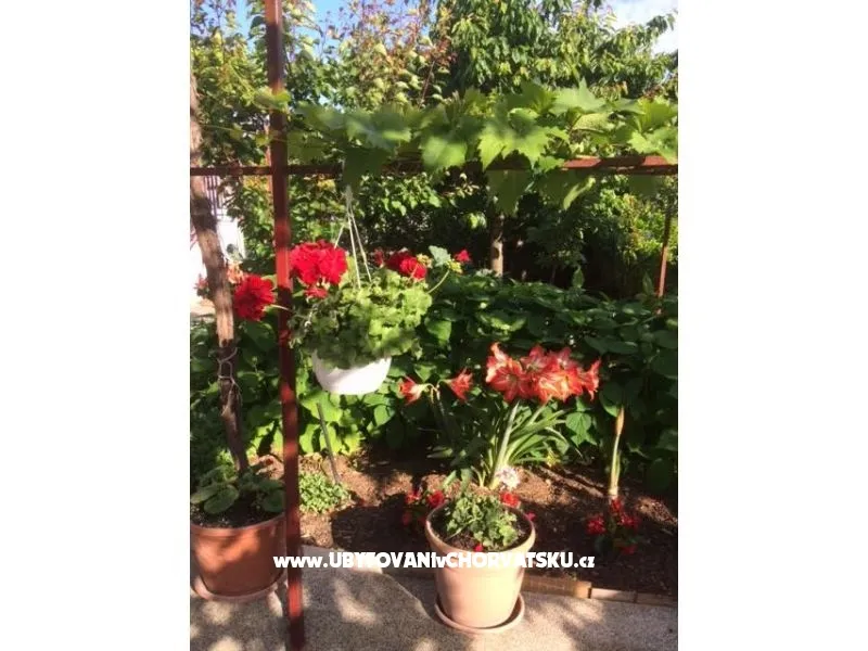 Každý apartmán má zařízenou kuchyň, plynový sporák, ledničku, koupelnu s vanou a wc, ložnici, balkon nebo terasu se stolem s židlemi, TV-SAT, vlastní vchod, žehličku, fén, přístroj na filtrovanou kávu. Možnost použití pračky a telefonu za doplatek. Výměna lůžkovin každý 7dnů, kuchyňských útěrek každé 3 dny. V apartmánech je dovolené kouřit. Grill a parkoviště ve dvoře....