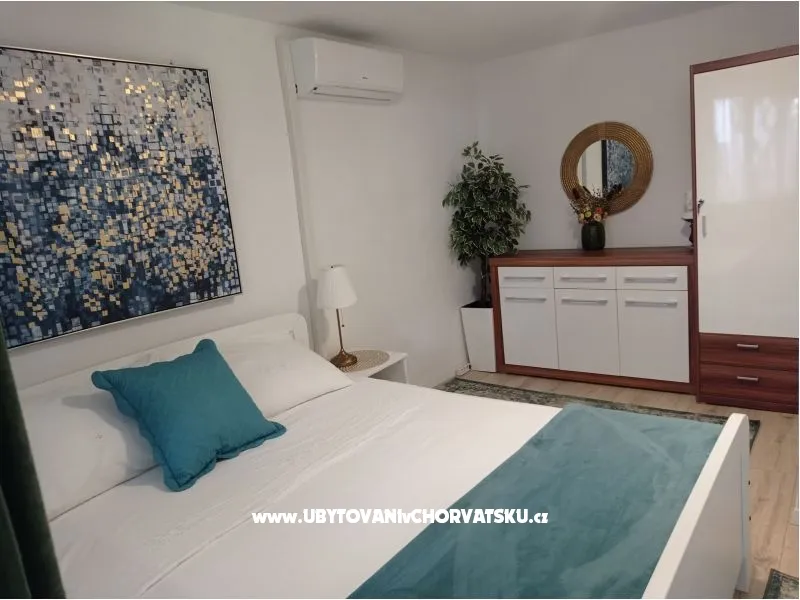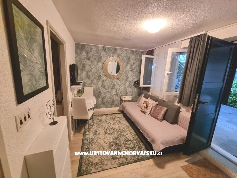 Vyjímečná příležitost, byt s vlastním dvorkem! V letovisku Baška Voda, na jižní straně rodinného domu, v přízemí, se nachází okouzlující apartmán 36 m2, kapacita 2 + 1 osoba, se dvorem cca 80 m2, uzpůsobený pro pohodlný a relaxační pobyt. Kromě toho, že má 2 koupelny, je apartmán vybaven veškerým potřebným zařízením pro příjemnou dovolenou, včetně klimatizace, Hi-fi a kabelové TV, indukční varné desky, digestoře, myčky, pračky, trezoru. Pro větší pohodlí používáme ve vybavení bytu pouze saténové povlečení ... Největší výhodou bytu je dvůr o velikosti 80 m2, který má samostatný vchod a patří pouze uživatelům apartmánu a poskytuje absolutní bezpečí pro děti. Tradiční dalmatský dvůr je vysázen středomořskými rostlinami a dlážděná část je vybavena lehátky, zahradním nábytkem a grilem. Obývací pokoj s jídelnou a ložnice jsou přímo propojeny se dvorem. Parkovací stání je na severní straně budovy.Pokud toužíte po pocitu pohodlí domova, klidné dovolené ve stínu vinné révy, kterou zde k odpočinku vypěstovaly generace, jsme si jisti, že neuděláte chybu výběrem tohoto apartmánu pro vaší dovolenou v Chorvatsku.