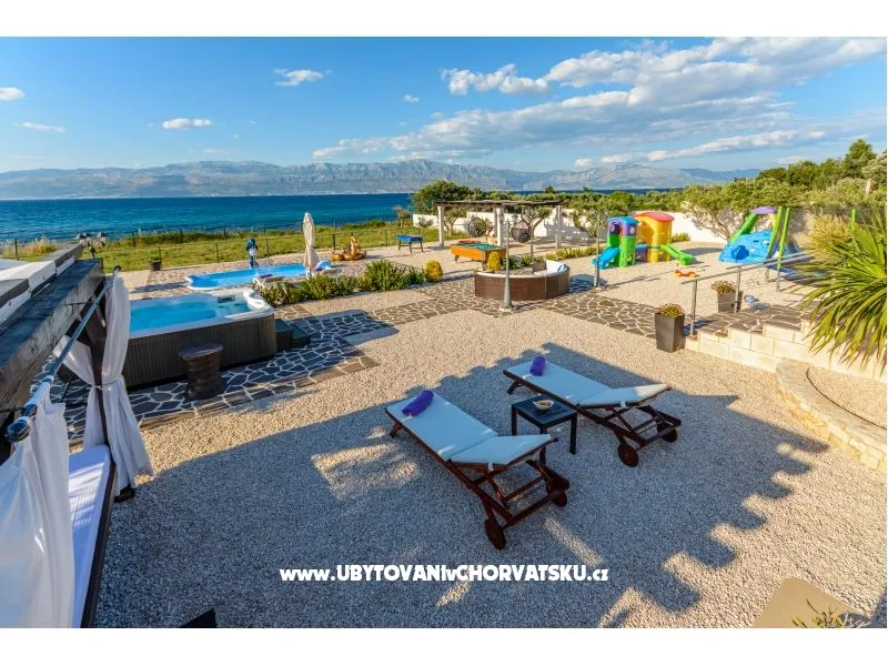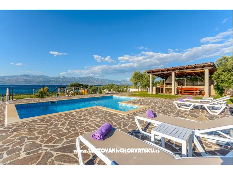 Vila se nachází v Supetaru na ostrově Brač, nachází se na samotě se soukromým vchodem k moři. Před domem je trávník a vybavení pro děti a bazén a gril. Výhled z domu je na moře a Split. Do centra města Supetar a restaurací můžete dojít po promenádě podél moře. Ve vzdálenosti 500m najdete Lidl a supermarket Konzum.