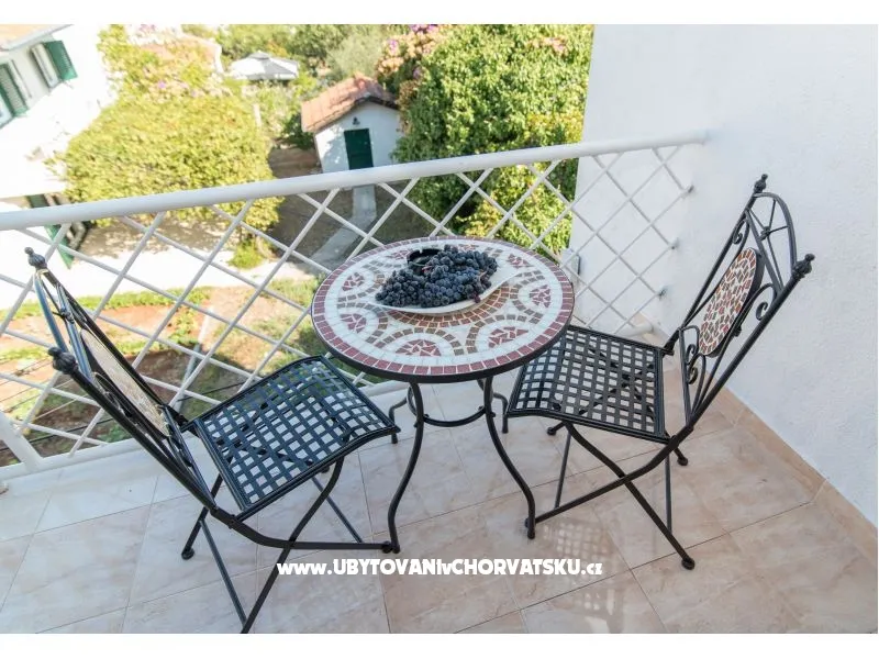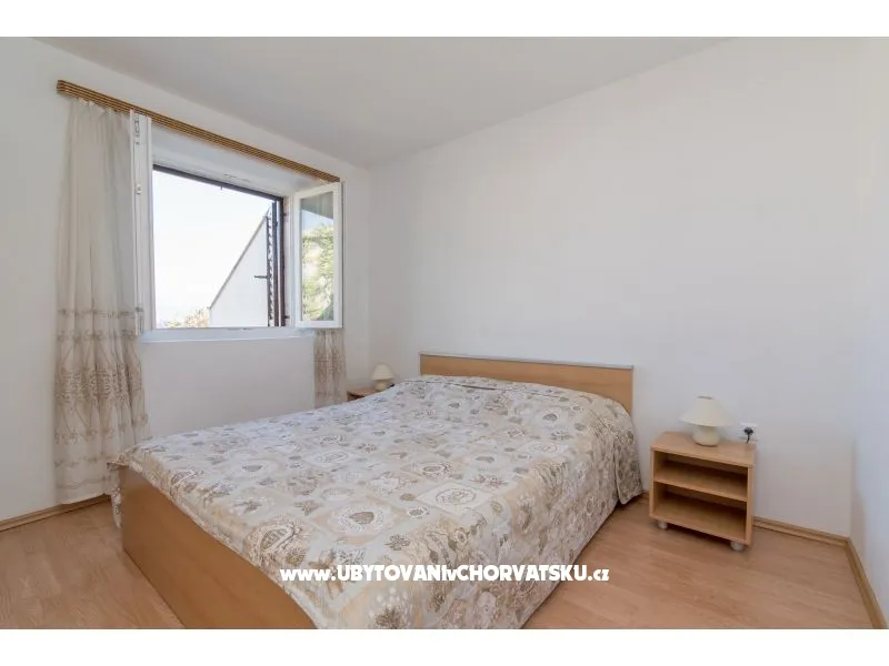 V samém centru města, ve velkém, kamenném, rodinném domě nedaleko moře se nachází naše apartmány obklopené zelení. Každý apartmán má cca 80m2 a jsou tam dvě ložnice, plně vybavená kuchyně s jídelnou, prostorný obývací pokoj a koupelna se sprchovým koutem. Všechny apartmány jsou klimatizované, vybavené satelitem a bezplatným wi-fi připojením.