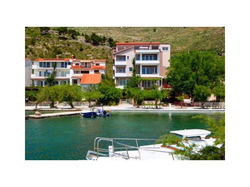 Apartmány v první řadě u moře a pláže. Dům je obklopen středomořskou florou. Některé apartmány mají klimatizaci a některé ne. V těsné blízkosti je betonová pláž (0m), písečná pláž (20m) a oblázková pláž (200m). V okruhu 2 km jsou k dispozici různé aktivity: - voleyball - běh po písečné pláži 4km dlouhé - surfing - škola potápění - rafting na řece Cetina - vodní...