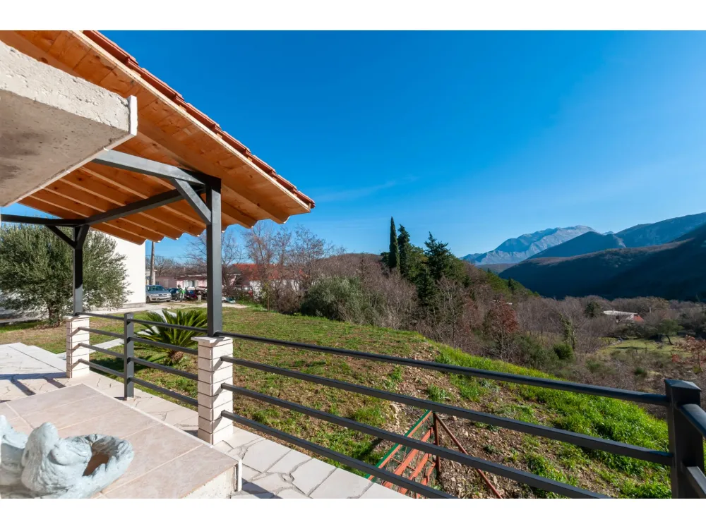 Dům se nachází v krásné přírodě s výhledem na okolní kopce a hory. Má jednu ložnici s manželskou postelí, dále dvě oddělené místnosti s jednolůžky, koupelnu se sprchovým koutem, kuchyň a velký obývací pokoj s rozkládací pohovkou. Velká krytá terasa se sto