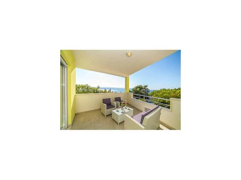 Luxusni velky apartman se dvema loznicemi, obyvacim pokojem, dvema balkony s primym vyhledem na more, jedna kuchyne a jedna koupelna. Apartman s bazenem.