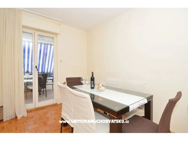 Platíte 35% zálohu + rezervační poplatek za rezervaci. Zbytek se platí při příjezdu do zařízení. Minimální délka pobytu jsou 3 noci, v hlavní sezóně 5 nocí. Příjezdy a odjezdy možné každý den. 10% sleva při pobytu na 15 a více nocí. Check-in je od 14:00; Odhlášení do 10:00. Apartmán Miana se nachází 170 m od pláže (druh pláže: skalnatá, oblázková). Má vlastní balkon s výhledem na moře. Propojovací dveře mezi 2 ložnic. Dětská postýlka na vyžádání. Venkovní vybavení: venkovní gril, soukromé parkoviště.