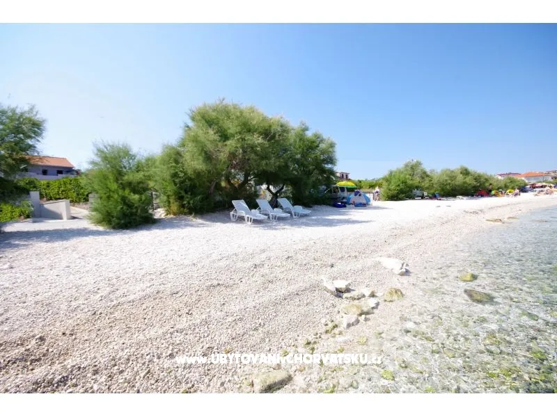 Náš dům je umístěn v idilické poloze a má klidné a tiché prostředí. Je ideální pro klidnou rodinnou dovolenou, zvláště vhodnou pro rodiny s malými dětmi, protože v domě je dostatek místa k hraní. K dispozici jsou 2 apartmány. Každý apartmán má vlastní vchod a parkoviště. Apartmány jsou nově zrekonstruované a plně vybavené. Krásný výhled na pobřeží zahrnuje výhled na záliv Kastela, který se rozprostírá z Trogiru do Splitu. Vstupte přímo z naší zahrady na krásnou pláž obklopenou tamarindovými stromy. K dispozici je molo a potápěčská deska. Vlastní parkoviště a gril, stejně jako venkovní sprcha ve dvoře a společná terasa jsou k dispozici všem našim hostům. Na ostrově Čiovo je mnoho pláží. Kromě oblázkové pláže před zahradou jsou tu větší a menší oblázkové pláže méně než 50 metrů vlevo a vpravo od našeho domu. Hypnotické vůně levandule a rozmarýnu, malebné olivovníky a vinice, čiré moře, extrémně jemné a zdravé klima zůstanou ve Vaší paměti.