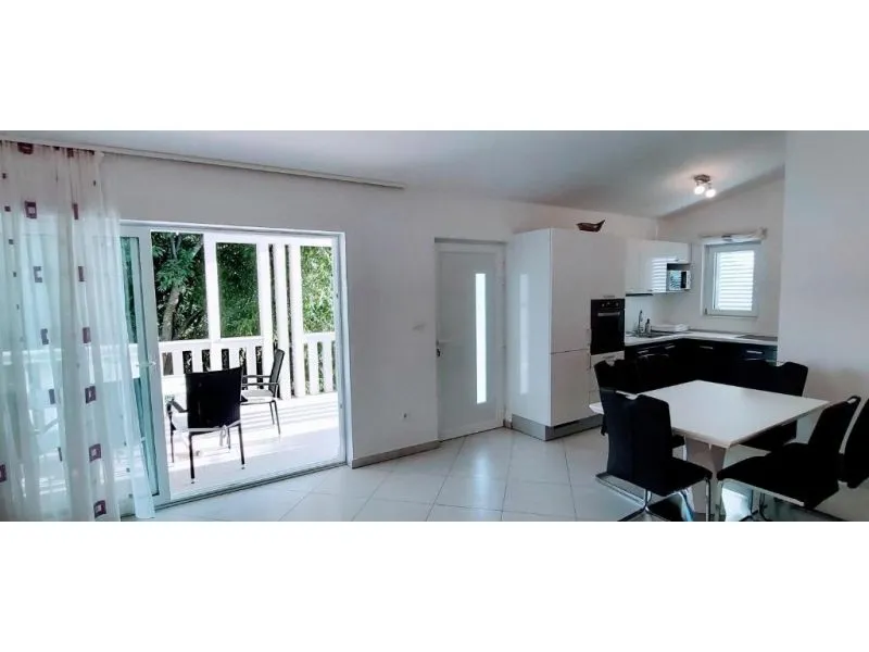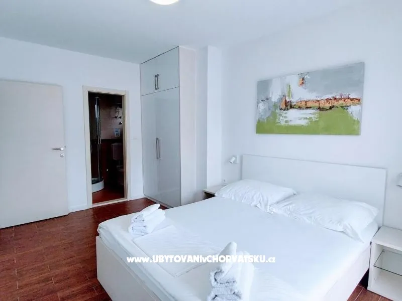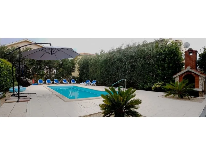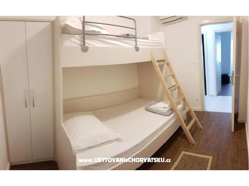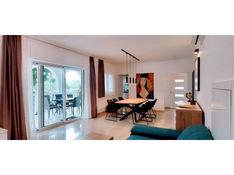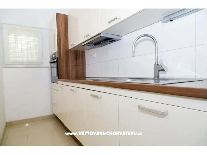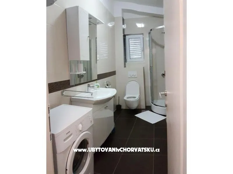 Dům se nachází na poloostrově, od Trogir 25 km a Primošten, 23 km, Split 48 km Dům má dvě podlaží. Přízemí: kuchyň, obývací pokoj, koupelna, dvě ložnice s koupelnou a manželskou postelí, pokoj s palandou, 2 klimatizační jednotky (jeden v obývacím pokoji, jeden na chodbě - pokoje) velká terasa 30m2, Z terasy vedou do zahrady a na bazén. V zahradní stůl pro 10 osob. Patro: kuchyň, obývací pokoj, dvě koupelny, dvě ložnice a manželskou postelí, pokoj s palandou, 4 klimatizační jednotky (jeden v obývacím pokoji, 3 - pokoje) velká terasa 30m2, Na zahradě je pokryta (stínové) parkoviště pro 5 automobilů. Na pláž je 100-120m východ a západ (poloostrov)