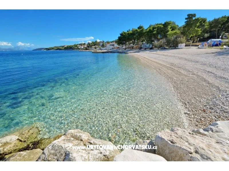 Plocha: 56 m2 + 34 m2 Balkon / terasa plně vybavené ubytování, 2 ložnice, 1 koupelna, pračka, zahrada, venkovní gril, soukromé parkoviště, 1. patro, 80 m od oblázkové pláže