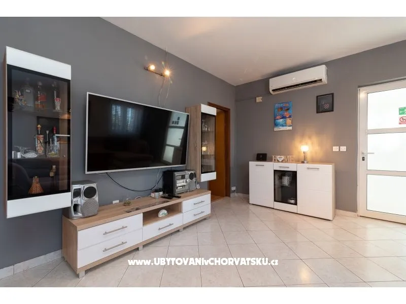 450 m od pláže, druhé patro, výhled na moře, soukromá a společná terasa, gril, 3 ložnice, 1 koupelna a další WC, klimatizace, satelitní TV, pračka, myčka, soukromé parkoviště