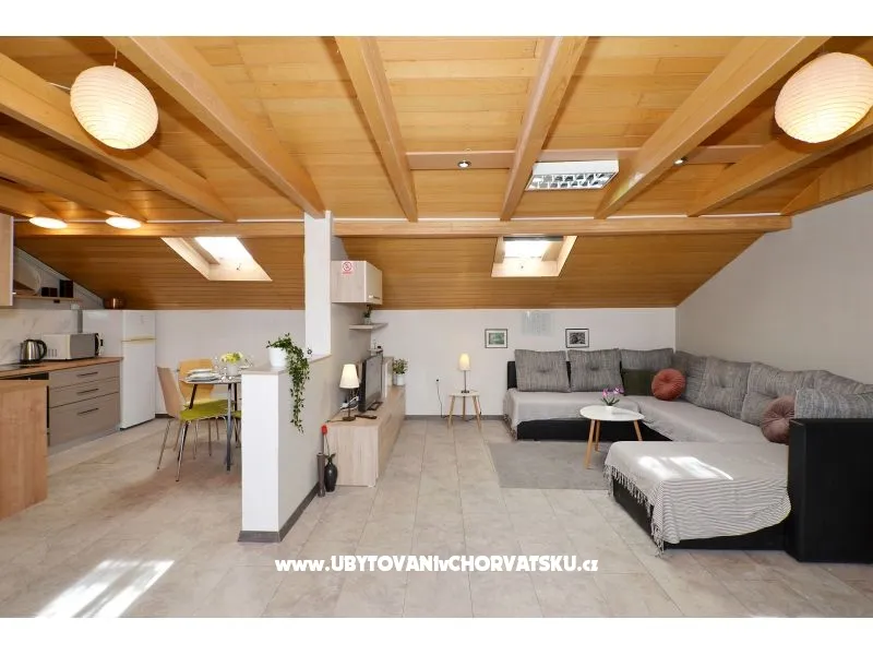 Za rezervaci platíte 35% zálohu + rezervační poplatek. Zbytek se platí při příjezdu do zařízení. Minimální délka pobytu je 3 noci. V hlavní sezóně je minimální délka pobytu 5 noci. Apartmány Ria se nachází 70 m od pláže (druh pláže: betonová, štěrková). Oba apartmány mají vlastní terasu s výhledem na moře. Dětská postýlka na vyžádání. Venkovní vybavení: venkovní gril, příjezd k objektu autem, soukromé parkoviště, garáž, zahrada Upozornění: Jedno parkovací místo na apartmán