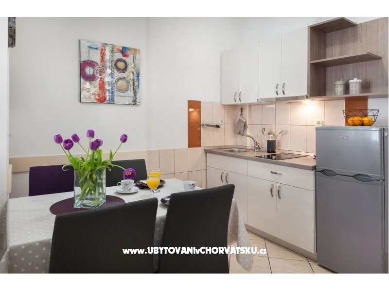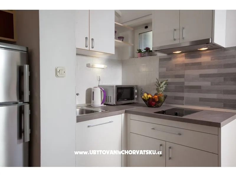 Super pensjonat z apartamentami z widokiem na morze. Ładnie i gustownie urządzone pokoje, dobrze wyposażone i przede wszystkim nowe. apartamenty są stosunkowo duże. W stosunku jakość/cena zdecydowanie jedna z najlepszych opcji w Tucepi. Warto dopłacić za apartamenty 4/5os na ostatnim piętrze z dużymi tarasami i zniewalającym widokiem na Adriatyk. Dojście na plażę zajmuje 5 minut spokojnym spacerem, a po drodze mija się sklepy i restauracje.