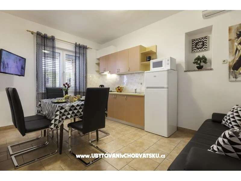 nově postavená vila s 11 apartmány, vhodná i pro větší skupiny. Většina apartmánů má klimatizaci a digitální TV-SAT s 300 programy a bezdrátový internet. Všechny apartmány mají TV. Ke každému apartmánu je zajištěné jedno parkovací místo u objektu.