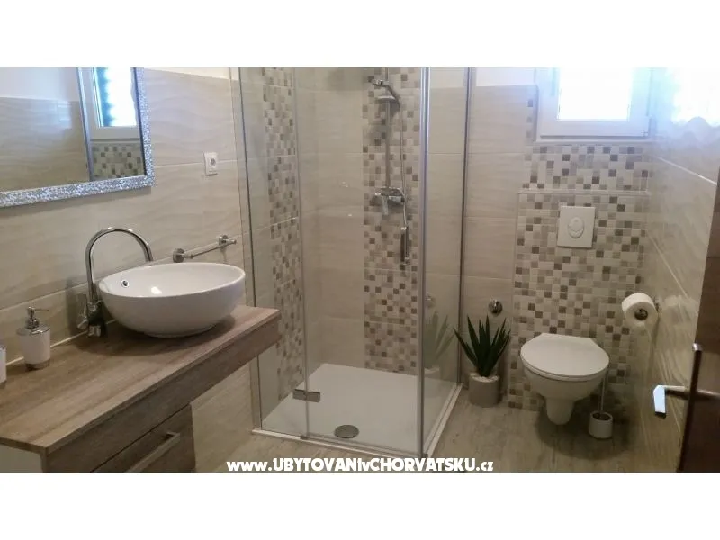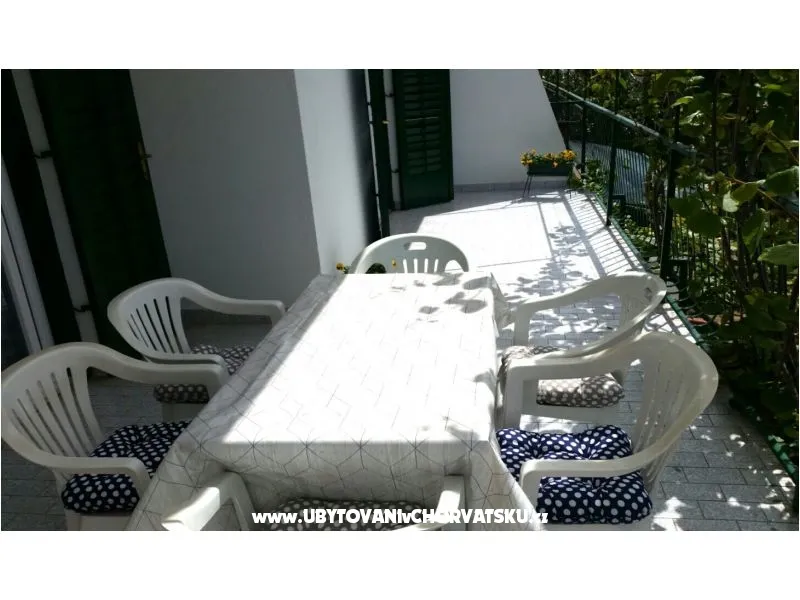 Všechny apartmány mají kuchyni, koupelnu, terasu, parkování ve stínu. Nacházíme se 80 metrů od krásné oblázkové pláže. Všechny apartmány jsou na jižní straně. Dům má velkou travnatou zahradu ve stínu, vhodné pro děti. Nabízíme mnoho sportovně-rekreačních možností. Majitelé jsou vstřícní a připraveni Vám pomoci. K dispozici uvaziště člunu.