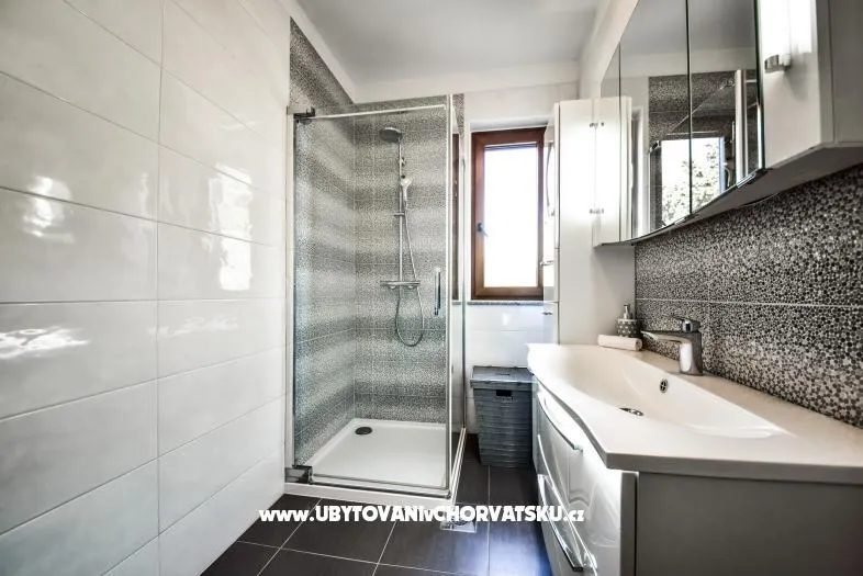 Apartmán v prvním patře rodinného domu, 20 m od pláže, klimatizovaný. Moderně zařízený, s plně vybavenou kuchyní s myčkou a troubou, obývací pokoj, terasa s výhledem na moře. Wifi zdarma. 2 ložnice, koupelna s pračkou, samostatné WC. Velký dvůr s parkováním, gril.