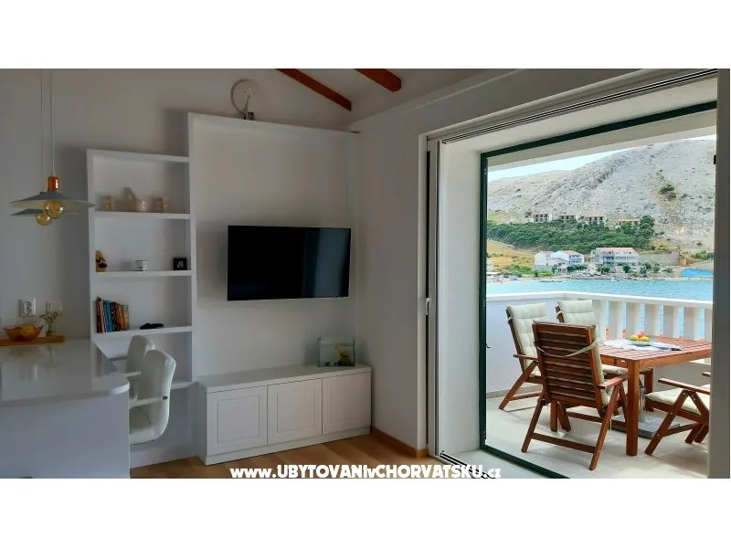 Krásný nově zrekonstruovaný byt, plně zařízený, s terasou s výhledem na celý záliv. Zahrada a pláž před domem.