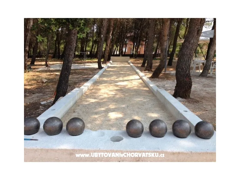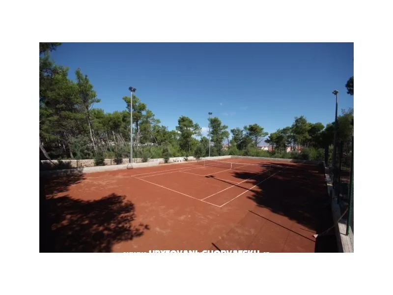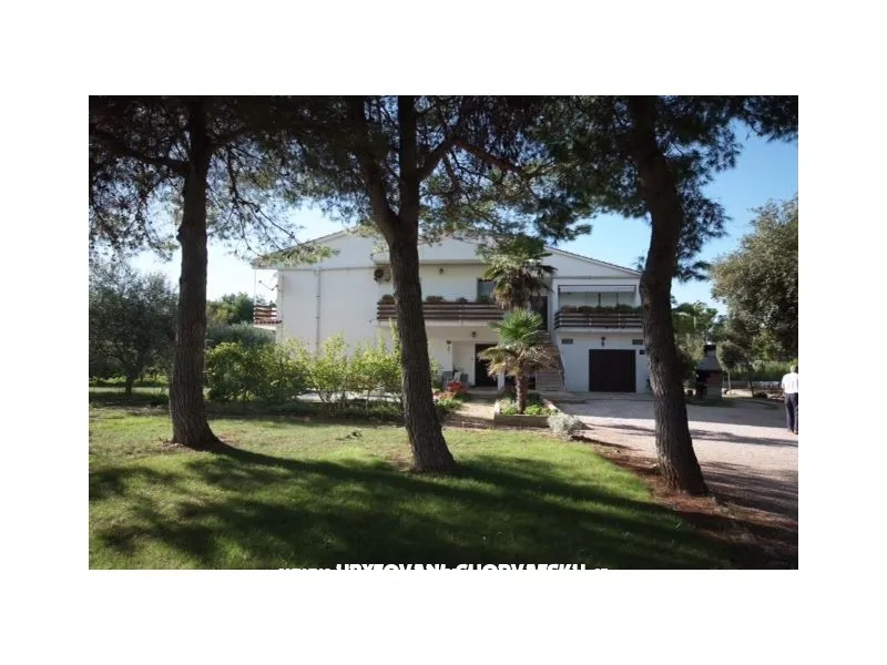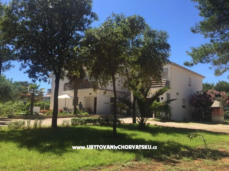 Apartmány jsou situovány v třípodlažním domě středomořském stylu uprostřed borového lesa, pouhých 150 metrů od pláže. Každý ze čtyř apartmánů je nově zrekonstruován a vybaven vším potřebným, aby se host cítil jako doma. Kuchyňské spotřebiče, klimatizace, televize se satelitem, komfortní koupelna a balkony jsou nedílnou součástí každého z nich. Dům je jen 1000 m od centra, 50 m od pekárny, 400m od obchodů, 300 m od restaurace. Zahrada s 30 000 m2 plochy je nedílnou součástí všech apartmánů a je k dispozici pro své návštěvníky, nabízí jim zábavu a odpočinek během dne a večera. Všichni hosté mají k dispozici gril, stůl ve stínu borovic a lehátka pro relaxaci. Fíky, hrušky, švestky, hrozny a různé byliny, které jsou v zahradě si hosté mohou za doprovododu domácích utrhnout a ochutnat kouzlo středomořské stravy. Ti, kteří si neumí představit dovolenou bez sportu se nabízí antukový tenisový kurt, petangue, volejbalové hřiště a jogging stezka ve stínu borovic. Pro děti je k dispozici koutek s houpačkami a pískoviště jakož i les obehnaný kamennou zdí.
