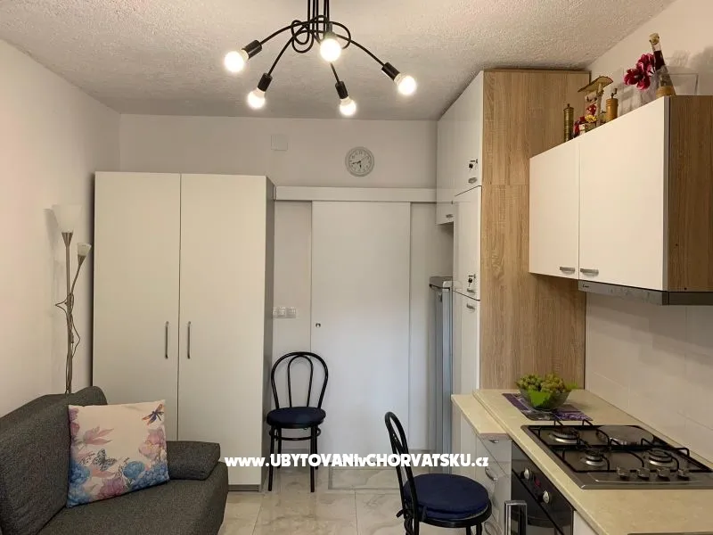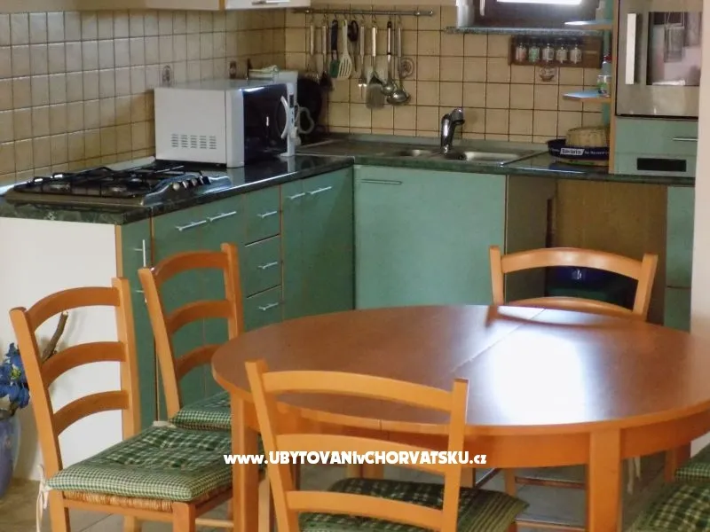 Pronájem apartmánu na ostrově Vir. Apartmán má 3 ložnice, koupelnu, kuchyni s jídelnou a obývacím pokojem a terasu s výhledem na moře. Apartmán je klimatizovaný, s TV a satelitem a dalším vybavením. Apartmán se pronajímá od 1.5. do 1.11.