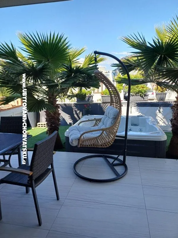 Dům je jednopodlažní, nově zařízený, tři pokoje, kuchyň a obývací pokoj, koupelna s pračkou. Na terase je jacuzzi. Dům pojme max. 6 lidí. Parkování zajištěno. Vše je v blízkosti - restaurace, obchody, promenáda. Pláž 350m.