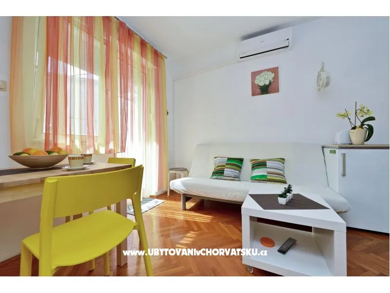 A2 + 1 v prvním patře - pro 2-3 osoby - ložnice s manželskou postelí, obývací pokoj s kuchyňským koutem a rozkládací pohovkou, koupelna, balkon, satelitní TV, WiFi, klimatizace. Parkování a grilování ve dvoře.