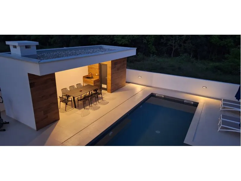 Nově postavená vila v klidné slepé ulici se 4 ložnicemi a koupelnami, bazénem a letní kuchyní s grilem. Díky tomu všemu je tato vila ideálním místem pro ty, kteří milují letní posezení pod širým nebem, večeře pod hvězdami a ranní klid.